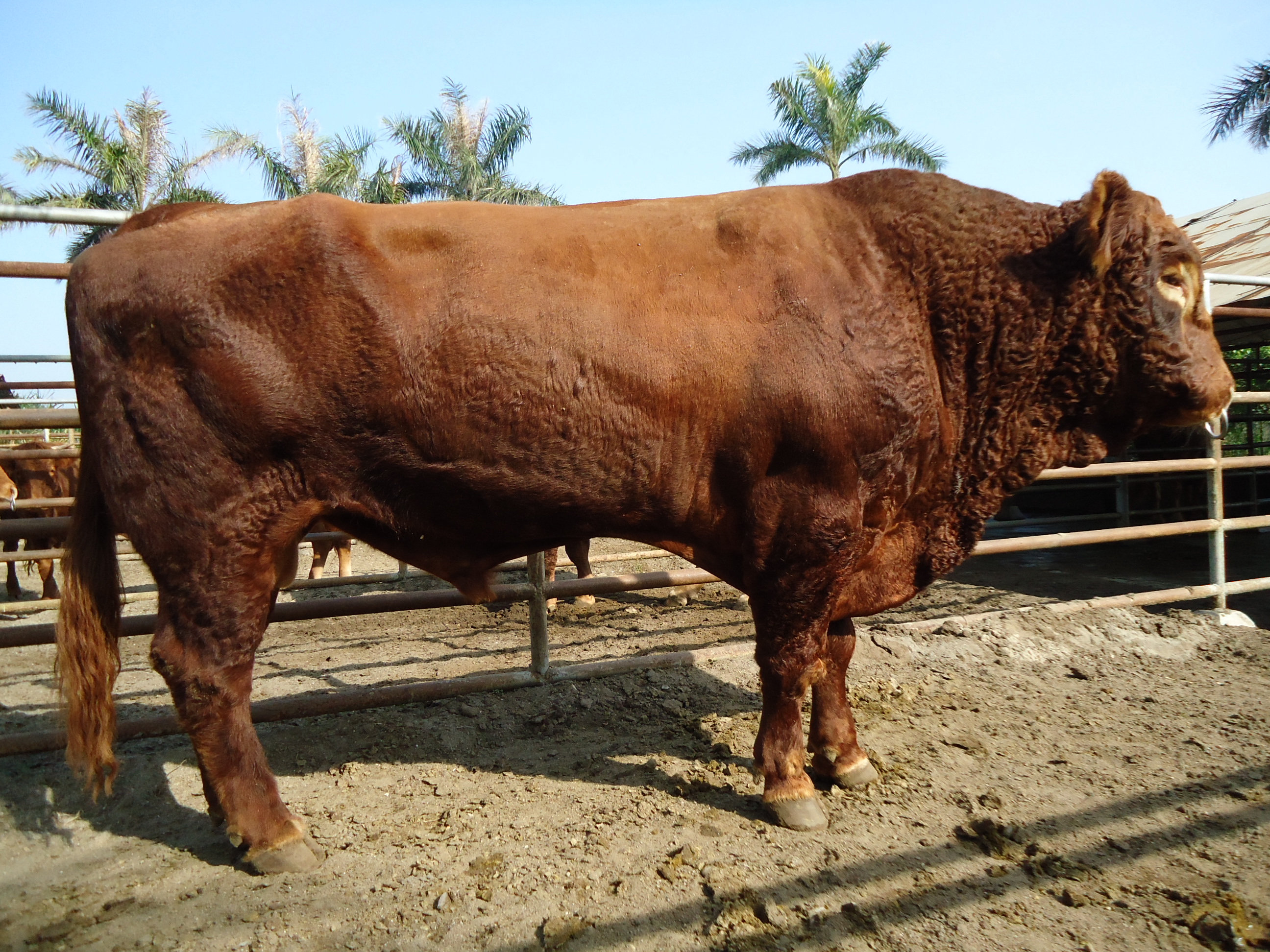 特征特性 主要特点是耐粗饲,生长速度快,体重增加需要的营养较少,母牛很少难产,且容易受胎。利木赞牛是由役用型牛培育而成的纯种肉牛品种,毛色纯一,在改良役用黄牛方面获得了良好效果。毛色为红色或黄色,头较短小,胸部宽深,体躯较长,成圆筒形,后躯肌肉丰满,四肢粗短。公牛成年体重1000-1100公斤,母牛成年体重 600-800 公斤。