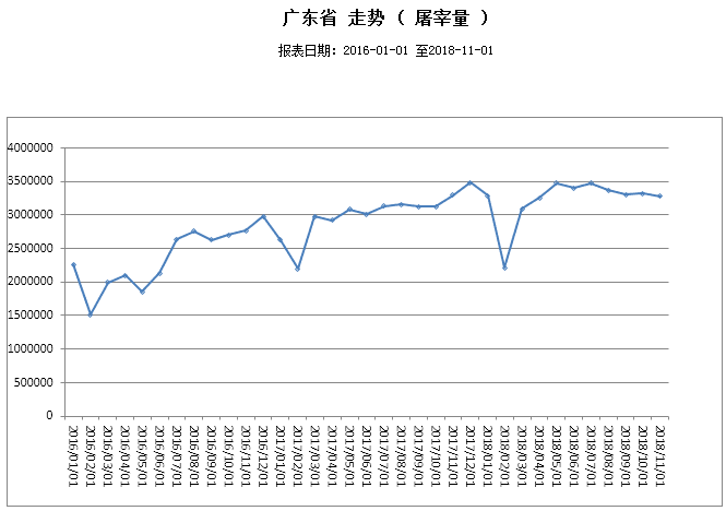 据对全省305家规模以上生猪定点屠宰样本企业跟踪监测,11月份共屠宰生猪3280714头,比10月份下降1.15%。