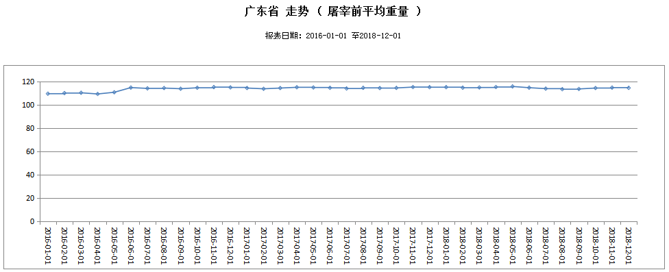 12月份,规模以上屠宰企业生猪屠宰前平均重量114.38公斤,环比下降0.20%。