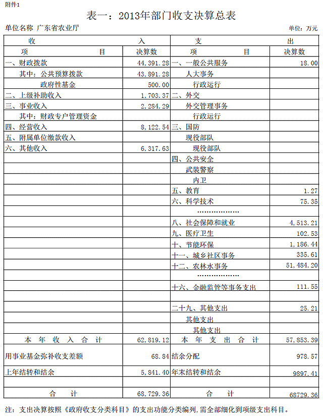 附件:1.表一2013年部门收支决算总表