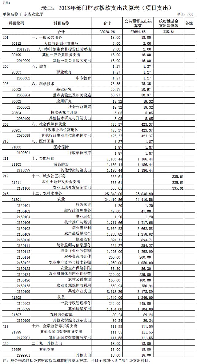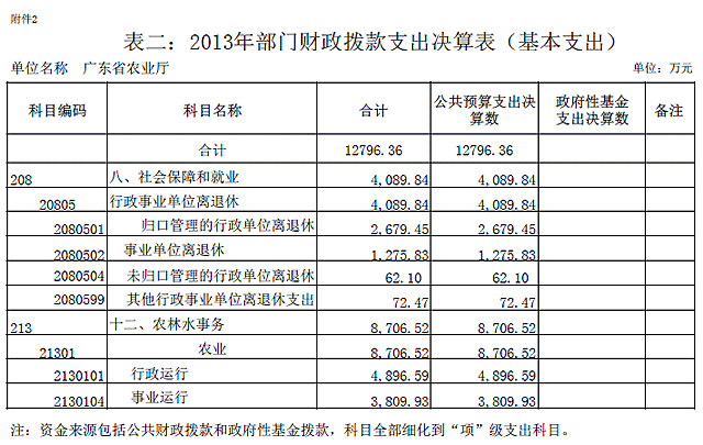 2013年广东省农业厅部门决算基本情况说明