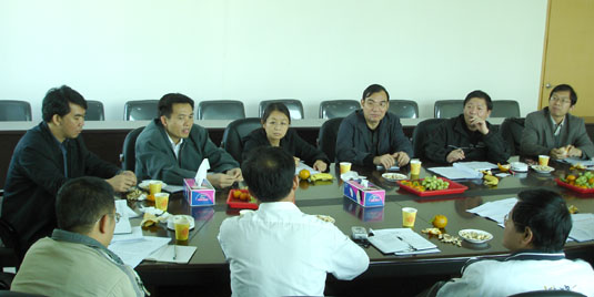 调研组在东莞市听取市农业局的汇报,并召开肥料生产厂家参加的座谈会。