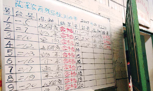 昨天,东莞厚街新围村一农贸市场的公示牌上,标明当天的蔬菜农药残留检测全部合格