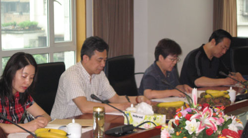 图为检查组在座谈会上做指导工作