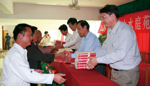 据了解,“山水南湖、山水庭苑”项目单位为支援广东省贫困山区群众扶贫开发工作出资30多万元,购置了10000册《中国新型农民素质读本(广东编)》,赠予广东省16个贫困县基层农村,供广大农村干部群众学习。该书是《中国新型农民素质读本》丛书的开编之作,其以“以时代精神塑造农民,以现代科技武装农民,以文明风尚引导农民,以特色文化熏陶农民,以优美环境影响农民,以真诚服务惠及农民”为宗旨,按照“有文化、懂技术、会经营”的要求,对培养新型农民的基本要求,提高农民的文化素质、技术素质和经营管理素质,对广东省进一步做好智力扶贫工作具有特别重要的意义。