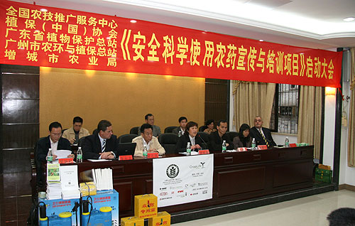 4月10日,《安全科学使用农药宣传与培训项目》启动会在增城市召开。会议由全国农技中心药械处副处长梁桂梅主持,植保(中国)协会主席狄仕文先生、植保(亚洲)协会马丁先生、广东省植保总站叶细养副站长、广州市农业局梁达波副局长和增城市政府的代表分别作了讲话。