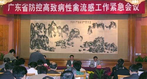 会议指出,去年以来,省委、省政府高度重视高致病性禽流感防控工作,认真贯彻落实党中央、国务院关于做好高致病性禽流感防控工作部署,各级党委、政府和各部门特别是农业畜牧部门高度警醒,上下一心,奋力拼搏,狠抓落实,严防死守,全省高致病性禽流感防控工作取得了家禽免疫密度位居全国前列,全省目前没有发生高致病性禽流感疫情的阶段性成效,得到了国务院防控高致病性禽流感督导组的充分肯定。但由于广州市发生一例人禽流感疑似病例事件后,加上我省当前正值禽流感易发、高发时期,防控高致病性禽流感形势仍然严峻。事件发生后,正在北京开会的张德江书记高度重视,对高致病性禽流感防控工作作出重要指示,黄华华、欧广源、钟阳胜、李容根等省委、省政府领导也分别做出了批示,各级各有关部门高度重视,迅速反应,及时部署,采取得力措施,各项防控工作正在有序、有力、有效地开展。