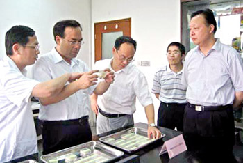 6月28日,农业部部长孙政才和副部长牛盾、浙江省副省长茅临生、农业部总经济师陈萌山等来到中国水稻研究所看望科研人员,了解水稻科研情况。孙政才一行视察了水稻所试验区、国家水稻种质库、国家水稻改良中心和农业部稻米质检中心,听取了超级稻品种选育、麦作式节水栽培技术等情况汇报,并与水稻所领导和专家进行了亲切座谈。
