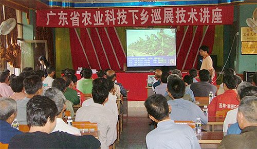 由省农业展览馆、茂名市农业局、茂名市畜牧局联合主办,信宜市农业局、化州市农业局、高州市畜牧局协办的农业科技下乡巡展活动,5月19-22日先后在化州市宝圩镇、笪桥镇、信宜市东镇镇和高州市石鼓镇举行。活动内容以宣传推广种养良种良法和农村适用技术为主,通过良种良法图片展览、技术咨询、讲座、赠送农技资料丛书、现场指导等形式,将农民朋友迫切需要的技术、信息送到他们手中。本次巡展共举办4场活动,培训基层干部、种养大户以及农民群众650多人,赠送技术资料丛书3200册,接受群众咨询850多人次。