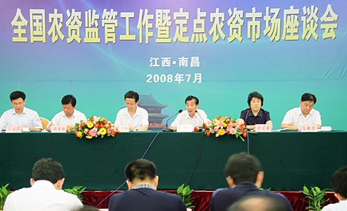 7月30日,农业部在江西南昌召开全国农资监管工作暨定点农资市场座谈会,部署下半年和今后一段时期农资监管工作。农业部副部长陈晓华在讲话时强调,农资是农业生产不可或缺的重要物质基础,是稳定农业发展的重要经济要素,在粮食生产中起着特殊的作用,确保农资质量,是保障粮食生产安全的第一关口。各级农业部门一定要提高对农资打假和监管工作的认识,把农资打假和监管工作放到更加突出的位置来抓,切实规范农资市场秩序,确保农资产品优质优价和稳定供应。
