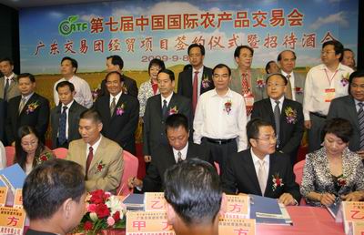 在随后召开的第七届中国国际农产品交易会广东交易团经贸项目签约仪式上,广东交易团现场签订合同交易24个,签约交易金额达23.8251亿元。另外达成23项合同交易,金额达18.6580亿元。交易会开幕首日即达成合同总金额达42.4831亿元。