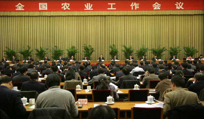 12月21日至23日,全国农业工作会议在北京召开。会议深入贯彻党的十七大和十七届三中、四中、五中全会以及中央经济工作会议、中央农村工作会议精神,总结了2010年和“十一五”农业农村经济工作,研究了“十二五”现代农业发展,部署了2011年农业农村经济工作。农业部部长韩长赋强调,要紧紧抓住我国发展的重要战略机遇期,牢牢把握加快发展现代农业的重大任务,加快转变农业发展方式,坚持做到“两个千方百计、两个努力确保”,全力夺取明年全年好收成,巩固“十一五”好势头,实现“十二五”好开局,推进现代农业和新农村建设迈出新步伐,实现粮食产量稳定在1万亿斤以上,农民收入持续较快增长,为增加供给、稳定价格总水平提供重要支撑,为经济社会发展全局作出新贡献。