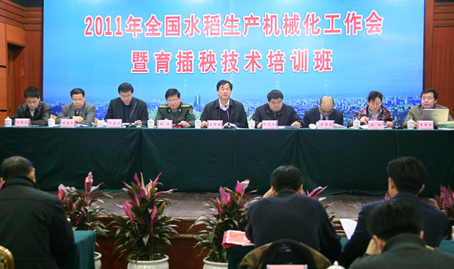 1月21日,本网记者从农业部在重庆市召开的2011年全国水稻生产机械化工作会暨育插秧技术培训班上获悉,“十二五”将加快推进水稻生产机械化,在2010年的基础上,水稻机耕水平稳定发展,机收水平每年持续提高3—4个百分点,机械栽植水平每年提高4—5个百分点,力争2015年全国水稻栽植机械化水平达到45%,水稻收获机械化水平达到80%,水稻耕种收综合机械化水平超过70%,部分地区率先实现水稻生产全程机械化。