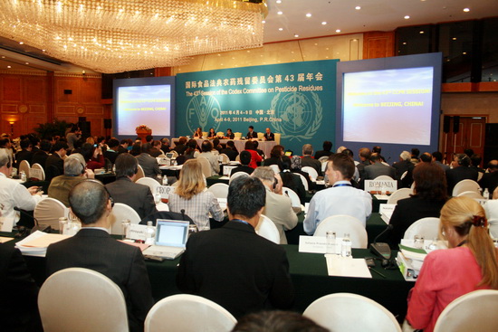 2011年4月4日-9日第43届国际食品法典农药残留委员会年会在北京召开。本次会议是2006年我国成为主席国后组织召开的第5次会议。