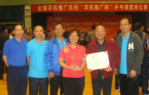 广东省农机推广系统乒乓球代表队在2011年10月15-16日举办的全国农机推广系统“农机推广杯”乒乓球团体比赛中荣获第三名。