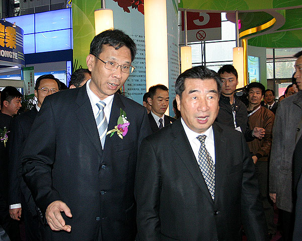 广东省副省长刘昆(左)陪同国家副总理回良玉(右)参观第九届农交会广东展厅