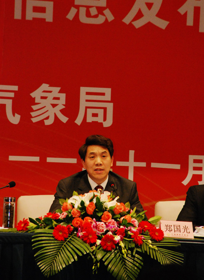11月13日,全国气象为农服务“两个体系”建设交流研讨会在重庆市永川区开幕。图为郑国光在开幕式上发表讲话。中国政府网 康丽琳 摄