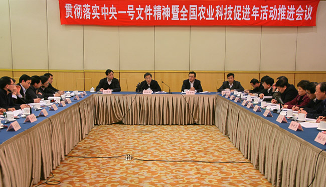 2月8日,农业部在北京召开会议,进一步学习贯彻中央一号文件和回良玉副总理在“加快农业科技创新与推广农业专家座谈会”上重要讲话精神,研究部署当前及今后一个时期农业科技创新与推广工作,推动“科技促进年”活动深入实施。农业部副部长张桃林在会上强调,当前和今后一个时期,加快农业科技进步,必须紧紧围绕粮食和主要农产品有效供给、农民持续增收和农业可持续发展的重大科技需求,以“加大投入、改革体制、构建体系、提升能力、建设队伍”为总体要求,以实现农业科技自身跨越发展和引领支撑现代农业发展能力与水平显著提升为主要目标,创新农业科技发展思路,加快构建新型农业科技创新体系。
