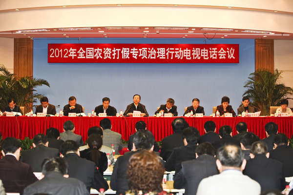 农业部部长韩长赋在会议上指出,2012年是实施“十二五”规划承上启下的重要一年,农业农村经济实现稳中求进、再夺丰收任务繁重,面临发展基数和生产成本高、气候条件和市场变化不确定等诸多挑战,农资打假和监管工作的形势更加严峻、任务更加艰巨。各地区各部门要充分认清做好当前农资打假和监管工作的重要性、紧迫性,全力以赴,狠抓落实,确保今年治理行动取得实效。