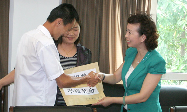 程萍副厅长给举报人颁发奖金