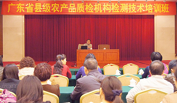 根据全省农产品质检体系建设工作安排,12月9日-11日,广东省农业厅在广州举办了一期县级农产品质检机构检测技术培训班,全省110个县级检测机构共468人参加。培训班邀请了农业部农产品质量安全监管局张继新处长授课,农业部农药残留监督检验测试中心(广州)、农业部蔬菜水果质量监督检验测试中心(广州)等专家作专题讲座。培训内容为全国和全省农产品质量安全形势、农产品质量安全法等法律法规、农产品检测工作要求、农产品质量安全定性和定量检测技术等。