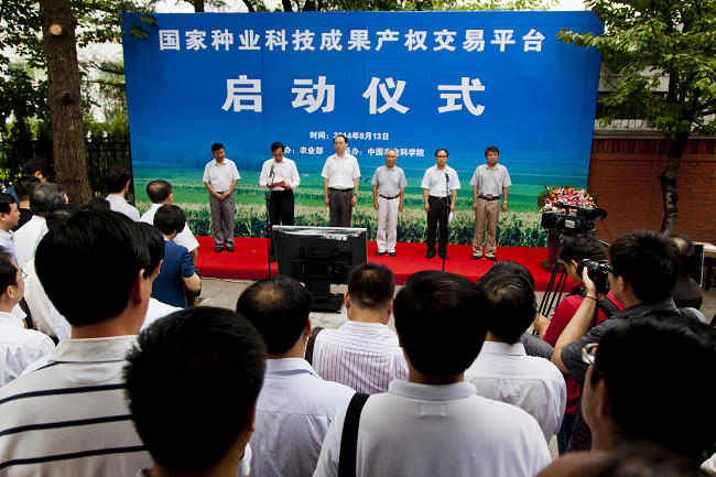 8月13日,国家种业科技成果产权交易中心及交易平台在中国农业科学院正式启动。图为启动仪式现场。