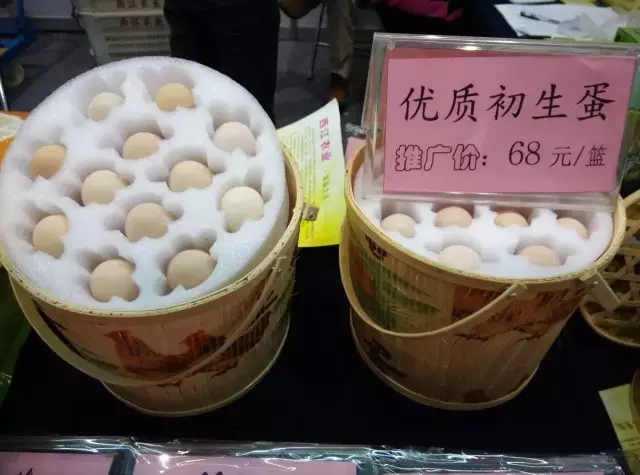 来自佛山的初生蛋,参展商介绍,初生蛋是27日“出生”,每一枚鸡蛋从出生第一天就打包送往餐桌,确保新鲜美味!