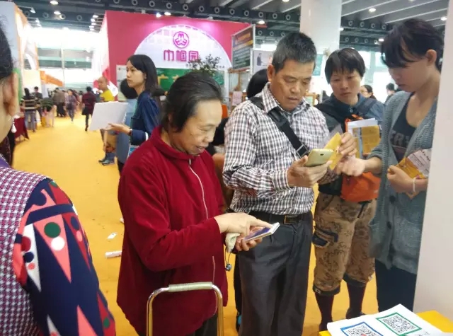 这届农博会最大的亮点:无处不体现“互联网+现代农业”的概念。除了专门设置了农业互联网信息化工程、农业电商等展区外,展销区也处处体现“互联网+”的元素。现场观展群众踊跃用手机参与现场互动,就连老年人也争着扫起了“二维码”。