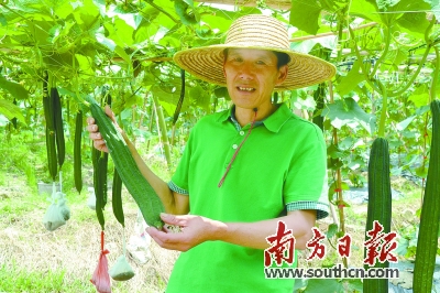 墩下村果蔬基地技术员谢朝广介绍,蔬菜基地统一发放种子,统一技术指导,统一销售渠道,摒弃中间收购流通环节,每天他都会到农户家指导怎么去防治病虫,跟着采摘、修剪等,确保种出来的蔬菜是无公害绿色瓜菜产品。