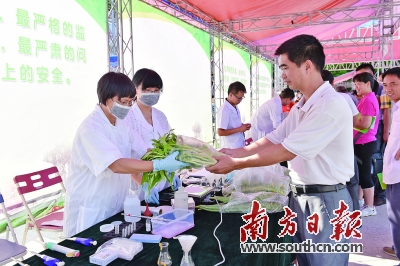 检测人员现场检测蔬菜