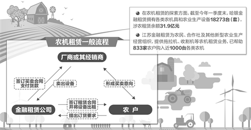 前不久,通过售后回租的方式,江苏省洪泽县三河镇祥发农机合作社与苏州金融租赁签订了28台农机设备的租赁合同,赶在农忙季节及时派上用场。近年来,金融租赁机构越来越关注如何更好地服务“三农”。去年,国务院办公厅印发的《关于促进金融租赁行业健康发展的指导意见》提出,鼓励金融租赁公司发挥融资便利、期限灵活、财务优化等优势,开发适合“三农”特点、价格公允的产品和服务,积极开展大型农机具金融租赁试点等。目前,金融租赁在服务“三农”方面进行了哪些探索,取得了怎样的成效,还存在什么问题?对此,《经济日报》记者采访了业内人士。
