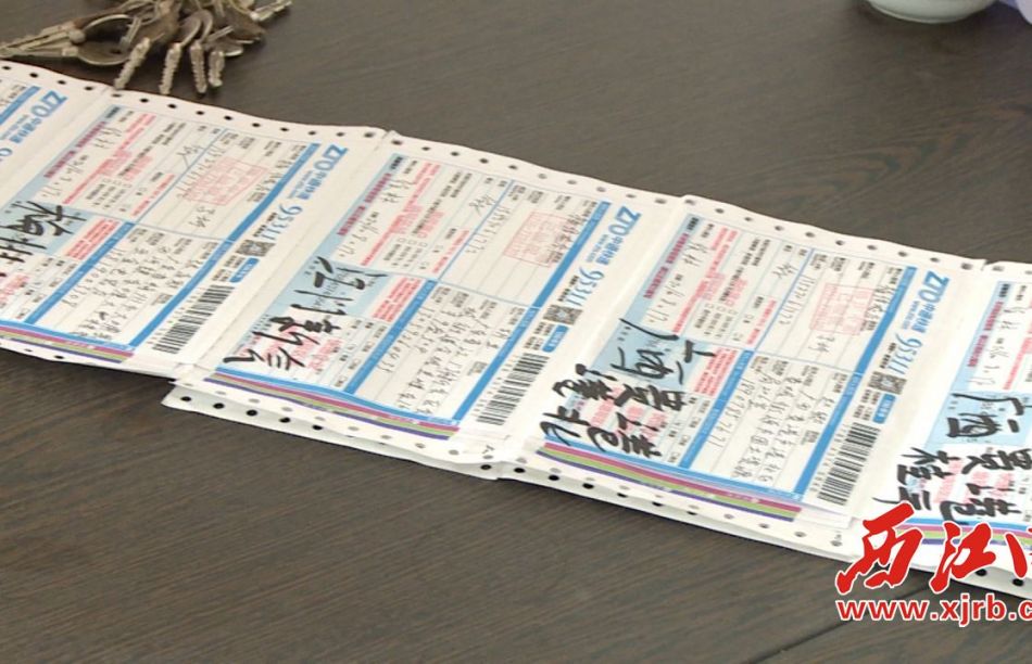马圩镇庙门山村电子商务服务中心内德日常发货单。记者 梁惠明 摄