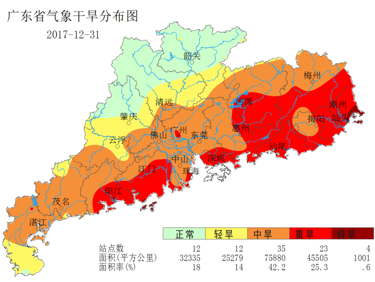 图3 12月31日广东省气象干旱分布图