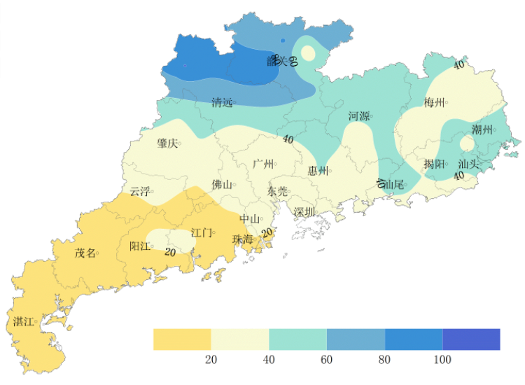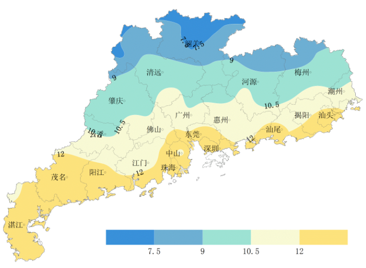 〖内容提要〗上周广东省气温偏低、日照偏多、降水前期偏多,中后期无降水。周前期受寒潮影响,全省中北部和东南部出现中到大雨局部暴雨,西北高寒山区出现冻雨或雨夹雪,低温多雨的天气条件对部分越冬作物、越冬果树及水产有一定的不利影响,局地蔬菜受冻霉烂,马铃薯生长受到抑制,黄烟烟苗生长缓慢,但降水偏多,有利于水库蓄水;周后期天气转晴,气温回升,对越冬蔬菜的生长发育和蕉柑的果实膨大有利。预计,全省大部分地区为晴到多云天气,部分地区有小雨。建议各地加强作物田间管理工作。