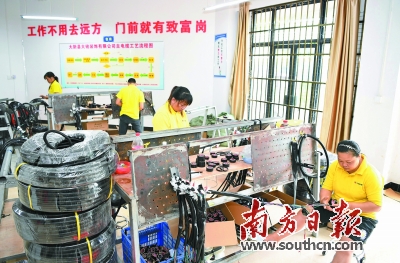江门还援建扶贫车间52个,吸纳就业劳动力2854人,其中建档立卡贫困户901人。黄永胜是崇左宁明县一个扶贫车间的员工,为照顾一家老小,他去年从外地返乡工作。“这边靠近家里,平时骑个电动车10多分钟就到了,可以在赚钱的同时兼顾家庭,所以就回来了,一个月还能拿到3000元左右的工资。”黄永胜说。