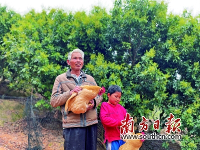余伯养有1000只荔枝鸡,其中,250只属于企业“代养”鸡,每只能获得5到10元的代养费,这就是余伯用自己的双手从“时间银行”里获得的奖励。“现在,这些荔枝鸡个个都有五六斤了,拍好照通过电商销售渠道,很快就可以售光。”朱倩莹说,2019年,她来到丁堂村协助驻村工作队进行帮扶,直到现在。通过代养、销售荔枝鸡,加上荔枝收成,每年收入超过3万元,年近80岁的老余实现了他的奔康致富梦。