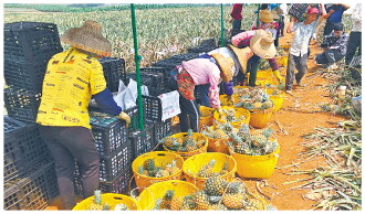 在农行信贷支持下,许多菠萝种植户迎来大丰收。