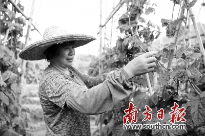 上巷村村民在凉瓜田里打理凉瓜藤。南方日报记者 杨兴乐 摄