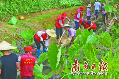 沙琅镇党员群众合力清理渠道淤泥。 刘栋铭 摄