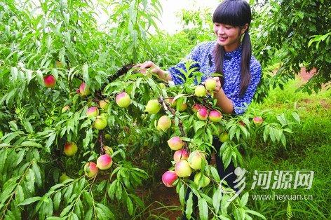 昨日,一位来自连平县城的姑娘正在该县上坪镇古坑村采摘鹰嘴蜜桃。10日,连平鹰嘴蜜桃将正式开园全面上市。13日该县将在东莞市举行专场展销推介。