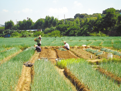 今年2月,新围村100多亩土地复耕后,李八妹就在这里开垦了3亩多的地,全都种上了绿油油的葱。“这已经是第4批了,前面3批收成都不错。”李八妹停住了锄头回过头来对记者说。