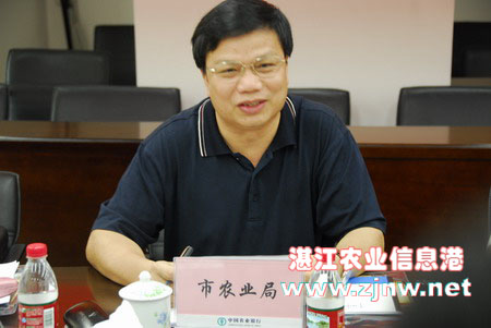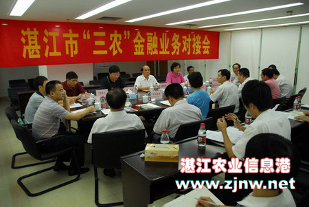 湛江市农业局局长陈康华主持“三农”金融业务对接会。湛江市委农办、市财政局、市农业局、市林业局、市畜牧兽医局、市水利局、市海洋与渔业局、市金融办、市粮食局、湛江农垦局、人行湛江市中心支行、湛江银监局、市供销社联社等单位负责人共30多人参加会议。