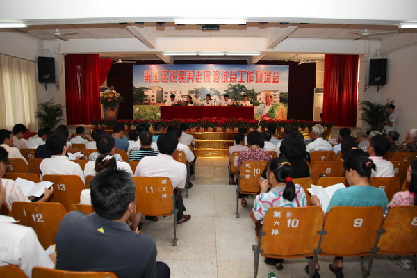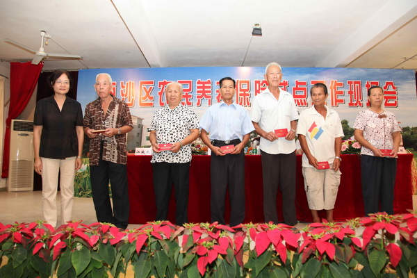 9月9日下午,南沙区举行了农民参加社会养老保险试点工作现场会暨基本养老保险金存折发放仪式,共有158名农民在仪式上领到了养老金存折,他们是南沙区万顷沙镇的首批参保人员。