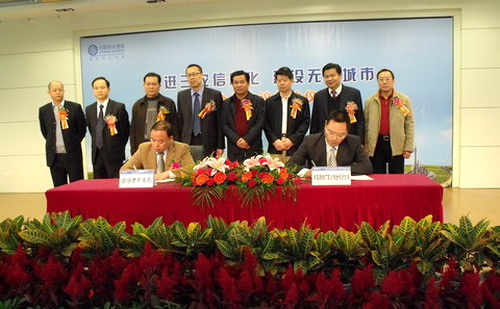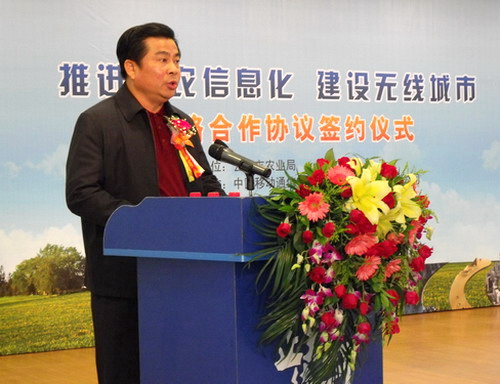 11月19日,云浮市农业局与中移动云浮分公司联合举办《推进三农信息化、建设无线城市战略合作协议》签字仪式,市农业局副局长谭雪龙与中移动云浮分公司副总经理吴其林分别代表市农业局和中移动云浮分公司在协议上签字。云浮市委常委黄达辉,省农业厅调研员张锦生、省农村信息中心主任黄建民,广东移动集团客户部副总经理李文凯,云浮市委农办主任王豪伟、云浮市信息产业局副局长梁文晖、云浮市农业局伍启汉局长、中移动云浮分公司总经黄友检见证这一神圣时刻。