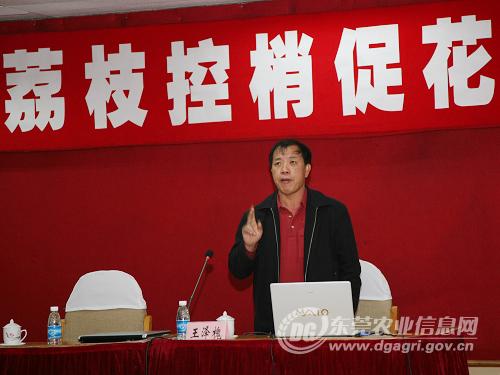 东莞农业信息网讯 “用上疏花机,一个人可以干10个人的活!”12月29日,市农技管理办请来华南农业大学教授、果树专家王泽槐,在大朗镇开办荔枝技术讲座。王教授向果农讲授了近期荔枝管理的技术要点,并建议我市果农效仿海南、粤西等地的大型果场,使用疏花机,机械化管理果园。