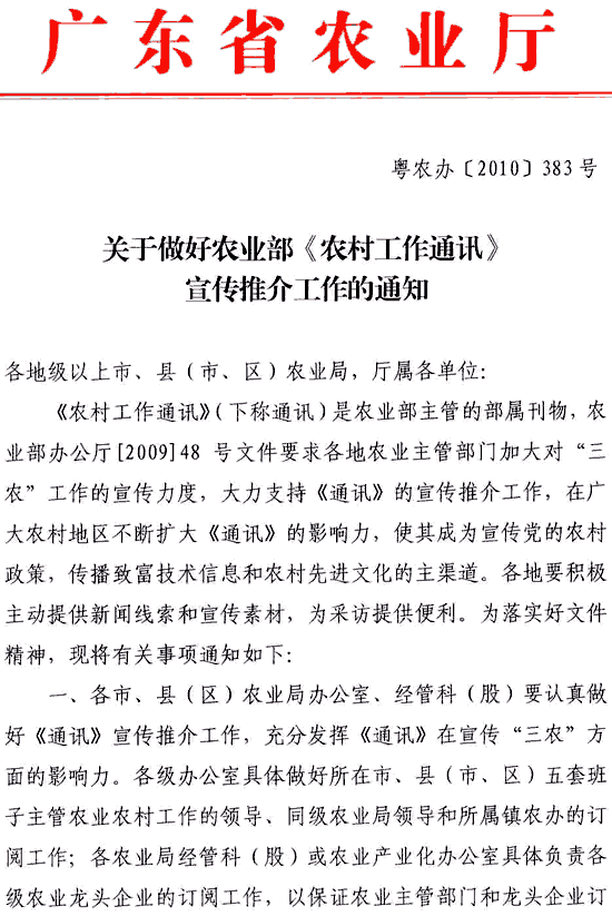 关于做好农业部《农村工作通讯》宣传推介工作的通知