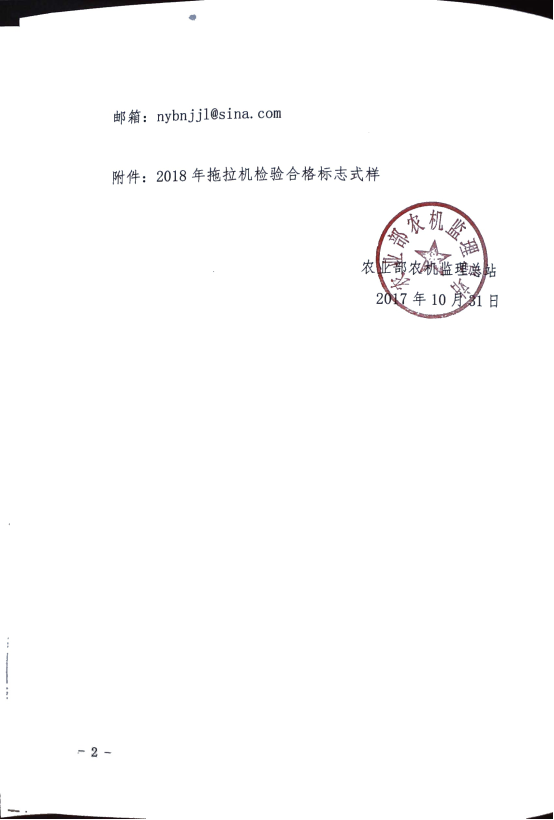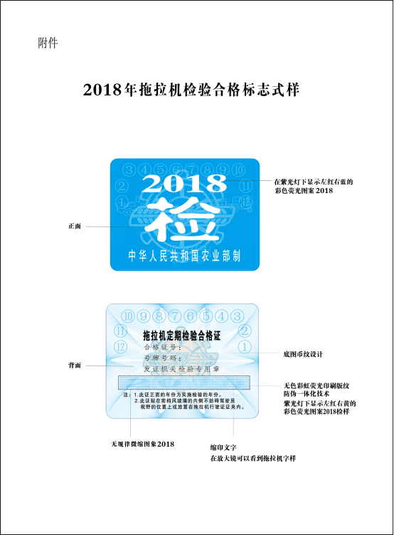 转发农业部办公厅关于公布2018年拖拉机检验合格标志式样的通知