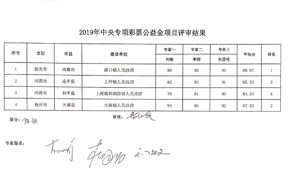 依据专家评审结果,决定将韶关市南雄市、梅州市大埔县列为2019年中央专项彩票公益金扶持项目县,每县各安排2000万元扶持资金,用于贫困村村内小型生产性公益设施建设,项目审批权限由各县负责。