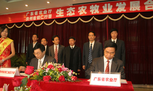 据了解,广东省农业厅和贵州省铜仁地区行政公署签署合作协议书内容包括了独资、联办、合办良种猪场和饲料加工厂、无公害蔬菜和农产品加工基地等。目前,深圳农牧实业等公司已分别和铜仁地区畜牧水产局、良种场、铜仁地区职业技术学院就建立种猪、无公害肉猪生产基地,建立教学实习基地、优先安排学生就业等事项签订了合作协议。
