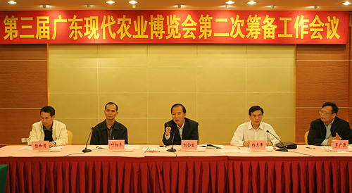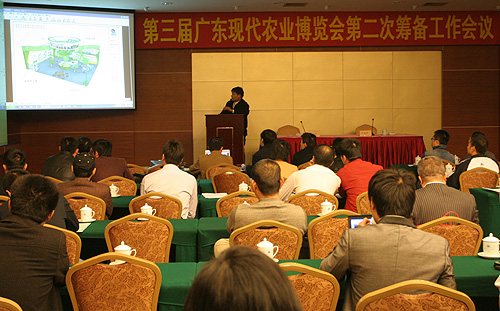 今天(12月2日),第三届广东现代农业博览会(以下简称农博会)组委会办公室在广州市珠江宾馆召开第二次筹备工作会议,听取各市农业局分管领导汇报筹备工作进展情况,评审各展区展览设计方案,通报展销、签约、推介报名情况,并对下一阶段工作提出要求。省农业厅党组成员、巡视员刘金生出席会议并作讲话。农博会筹备工作领导办公室成员,各地级以上市分管农博会工作的领导、联络员及展览设计负责人,省直有关单位、科研院校农博会筹备工作负责人及展览设计负责人参加了会议。